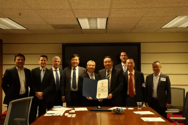 洛杉矶副市长Raymond Chan代表洛杉矶市长Eric Garcetti亲授感谢状——左五:洛杉矶副市长Raymond Chan 右四:绿地集团副总裁陆新畬先生 拍摄于2016年12月17日