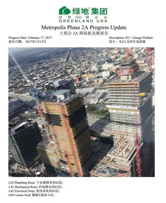 以下是2017年2月17日,洛杉矶·绿地中心二期最新施工进展报告: