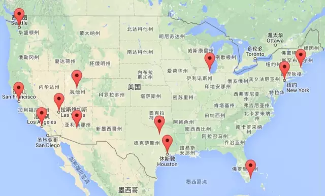 美国区域中心集团(USRCG)旗下区域中心分布图