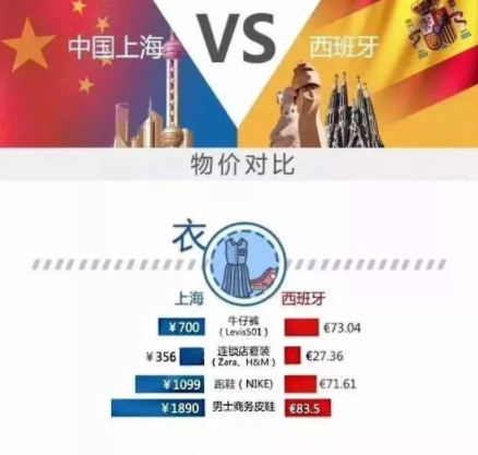 下图是网络上流传的西班牙与上海物价对比,供大家参考哦