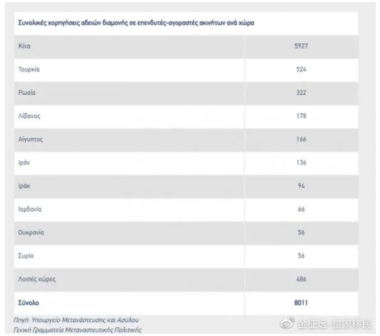 包括投资者的家庭成员在内,共有23785人通过“黄金签证”计划获得了希腊政府发放的居留许可。其中中国17875人,位居第一。