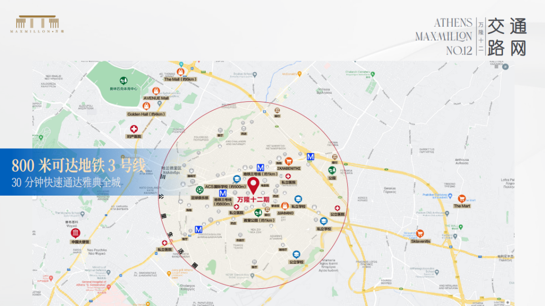 交通板块:距离地铁3号线Halandri站1km、M3 Agia Paraskevi 800m
