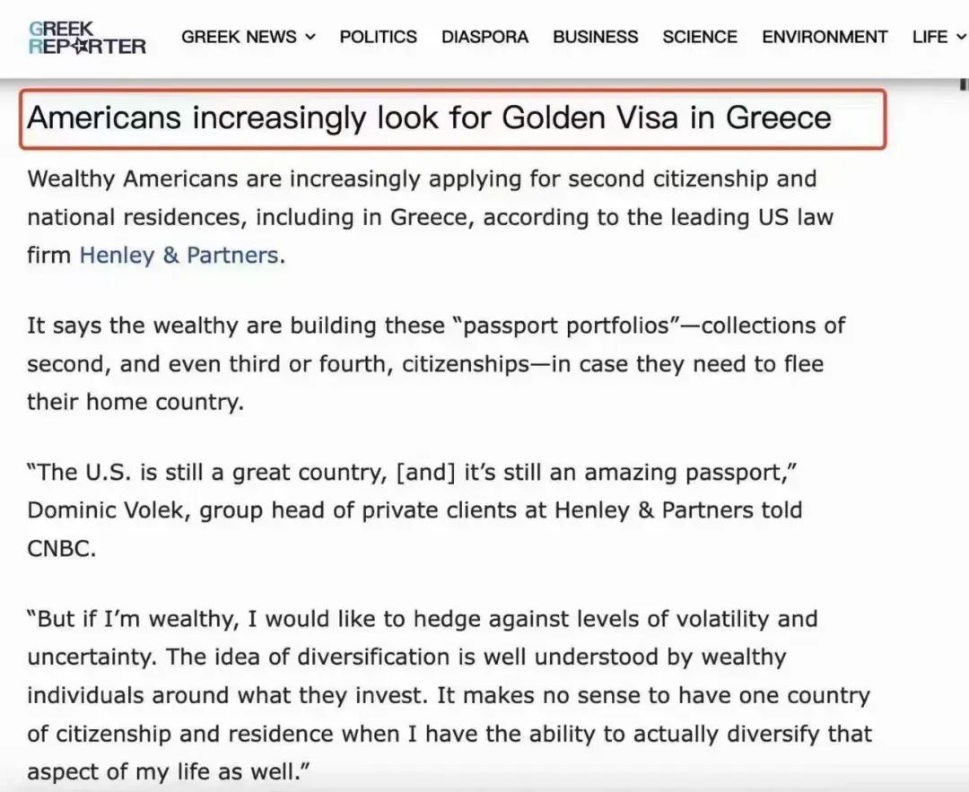 对于美国富裕阶层寻求“海外身份”的目的,Henley & Partners在一份报告中指出,随着全球不稳定因素的增加,持有另一个国家的身份,特别是那些被认为更加中立或政治正确的国家,现在已经成为了一种特定阶层的替代选择。